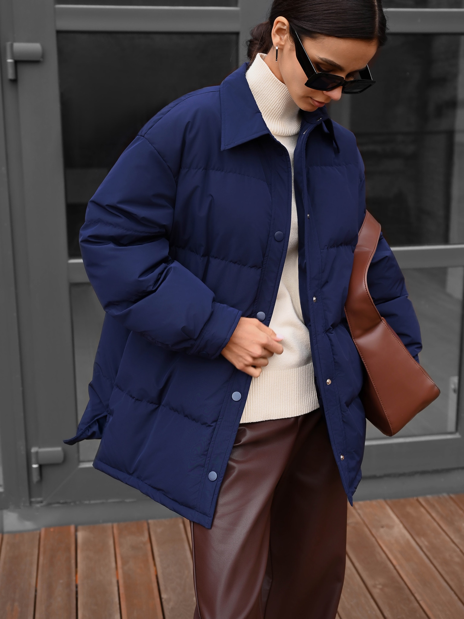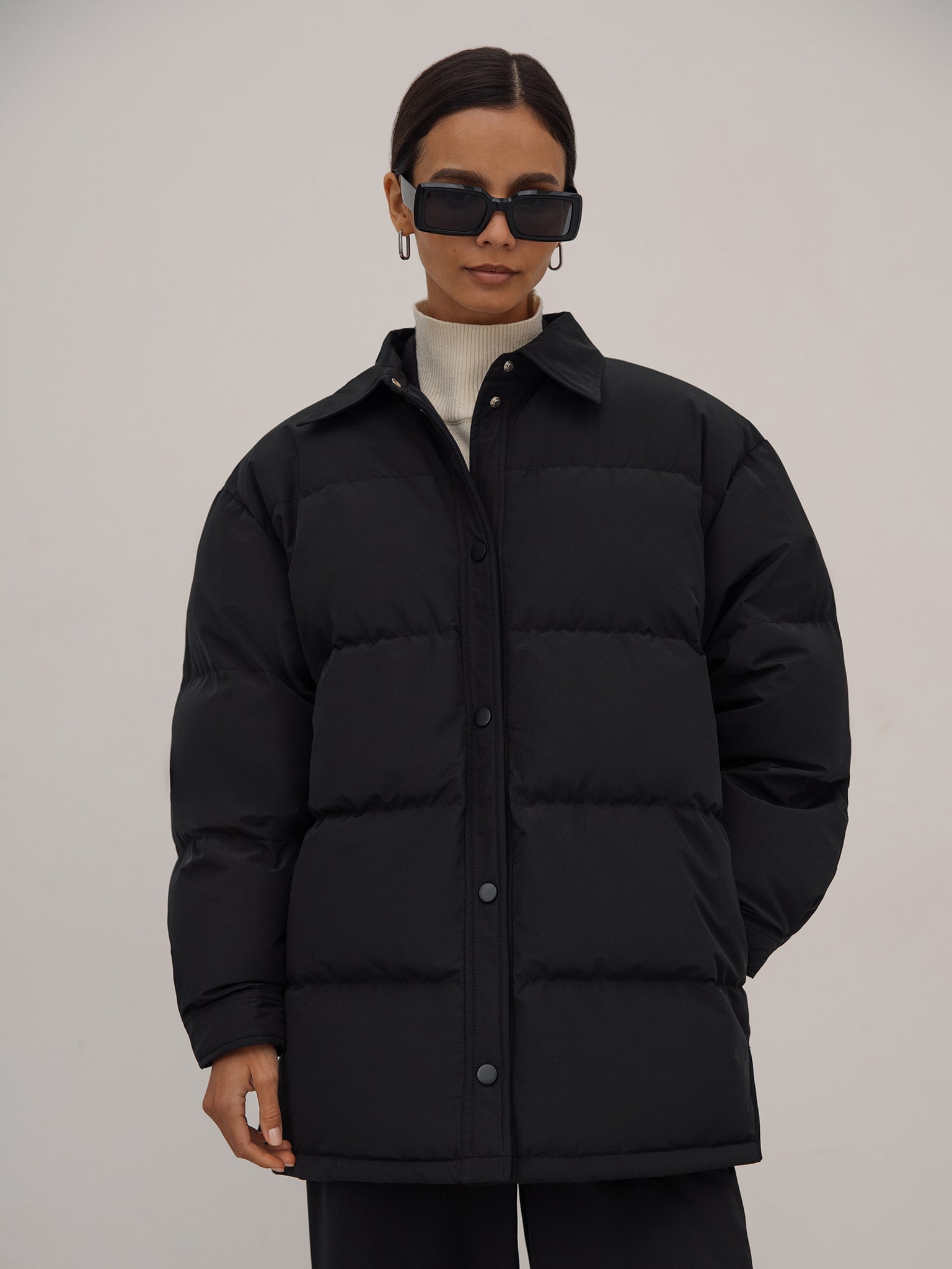 Стеганый пуховик с треугольным воротником :: LICHI
