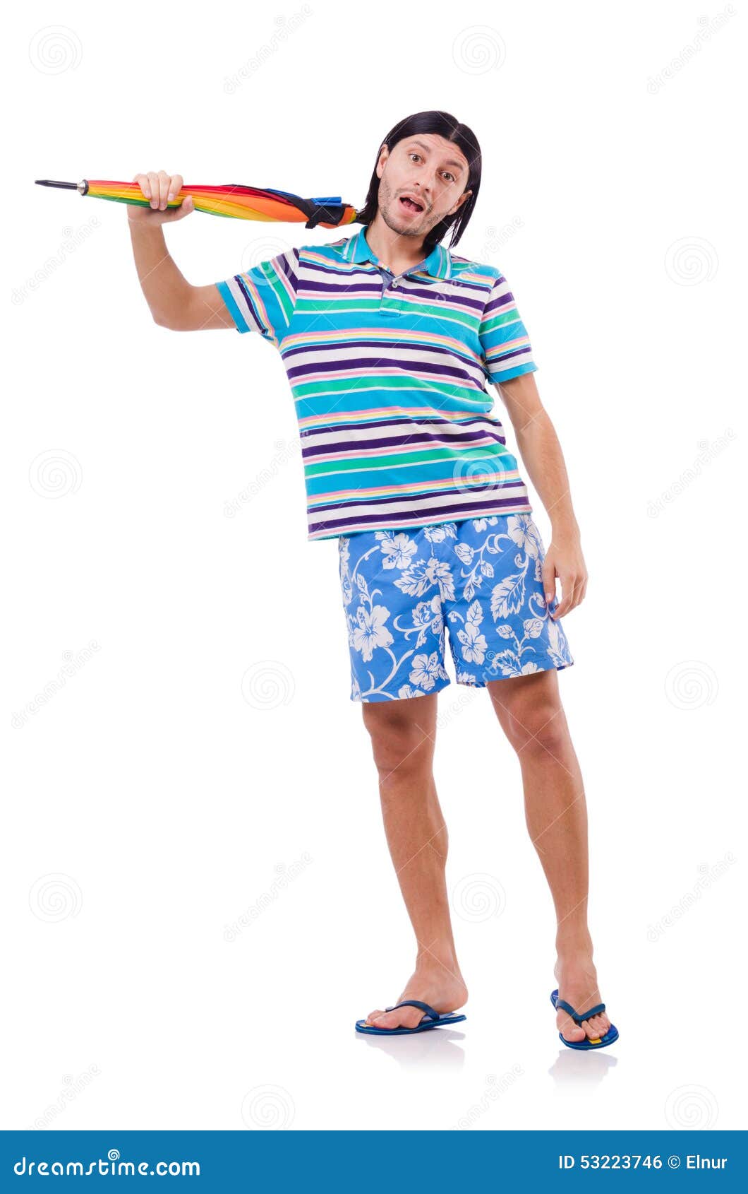 Положительный человек при красочный зонтик изолированный дальше